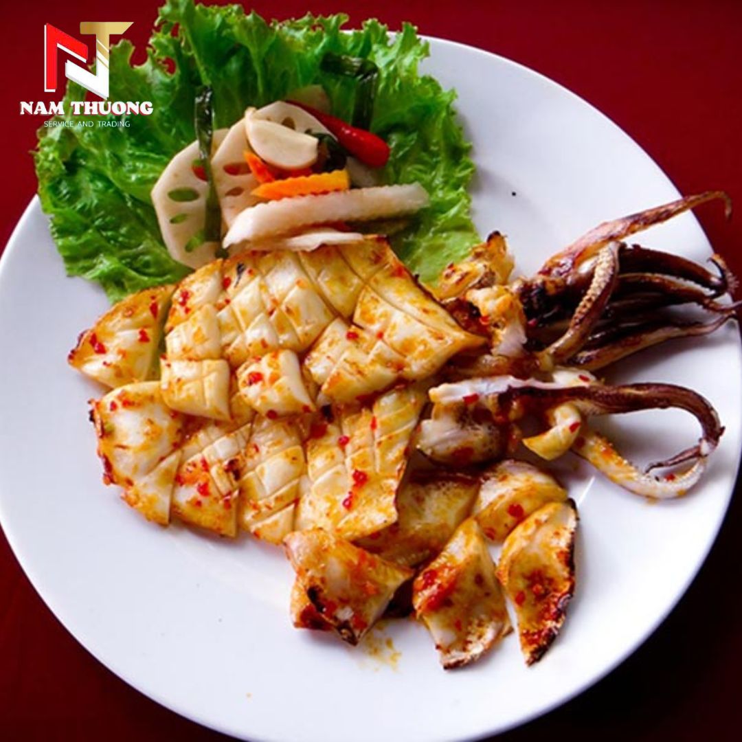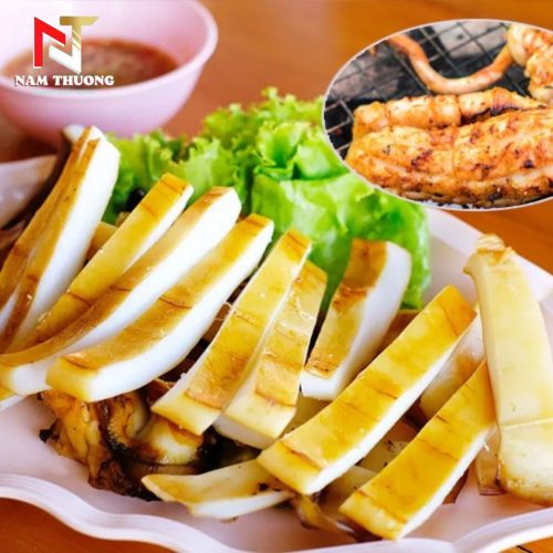 • Nướng than hồng: thơm lừng, thịt mực dai ngọt.