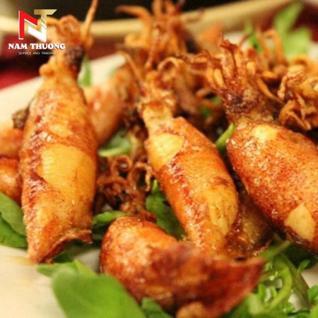 - Mực chiên xù: Lớp vỏ giòn tan, bên trong béo ngậy, trẻ nhỏ cực kỳ yêu thích.